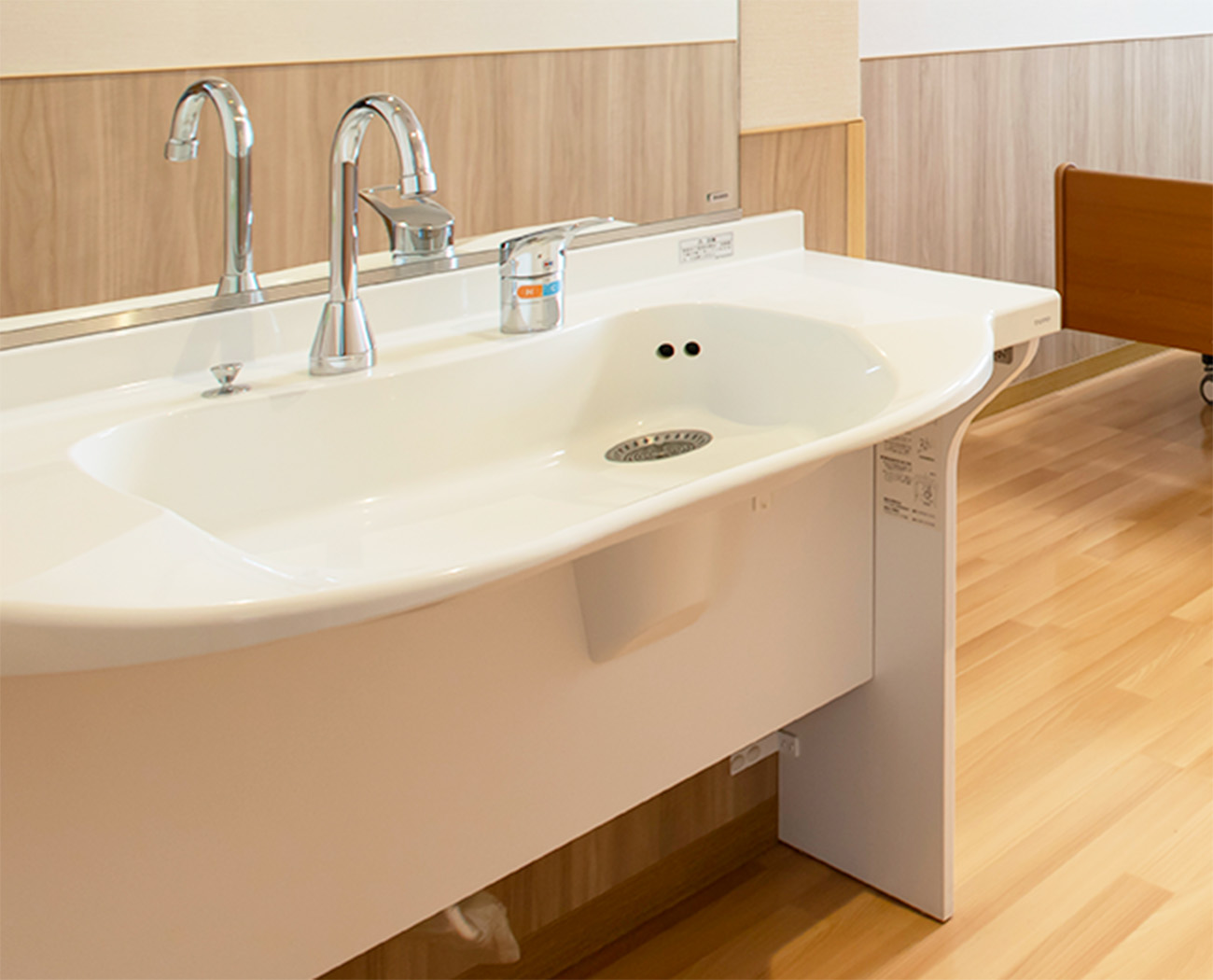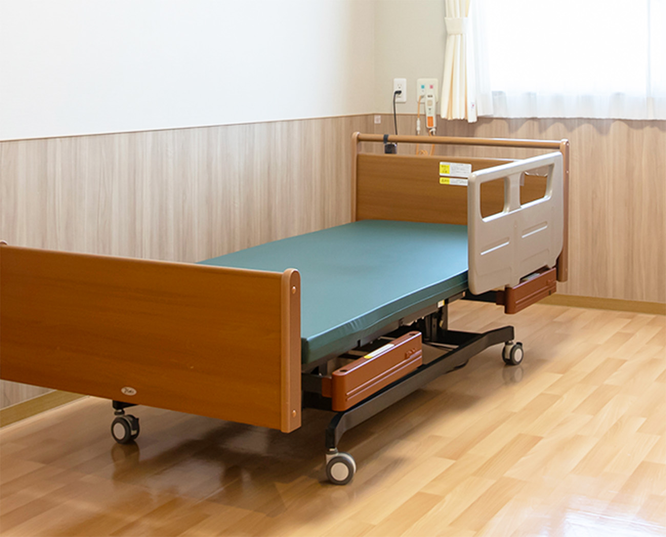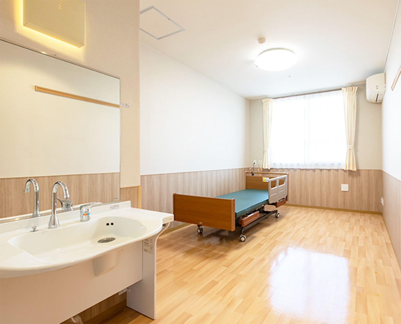 - 電動ベッド・洗面台・鏡・給湯器・ナースコール・収納・カーテン・照明(リモコン)・エアコン(リモコン)・ピンタックハンガー(壁に物が掛けられます)等